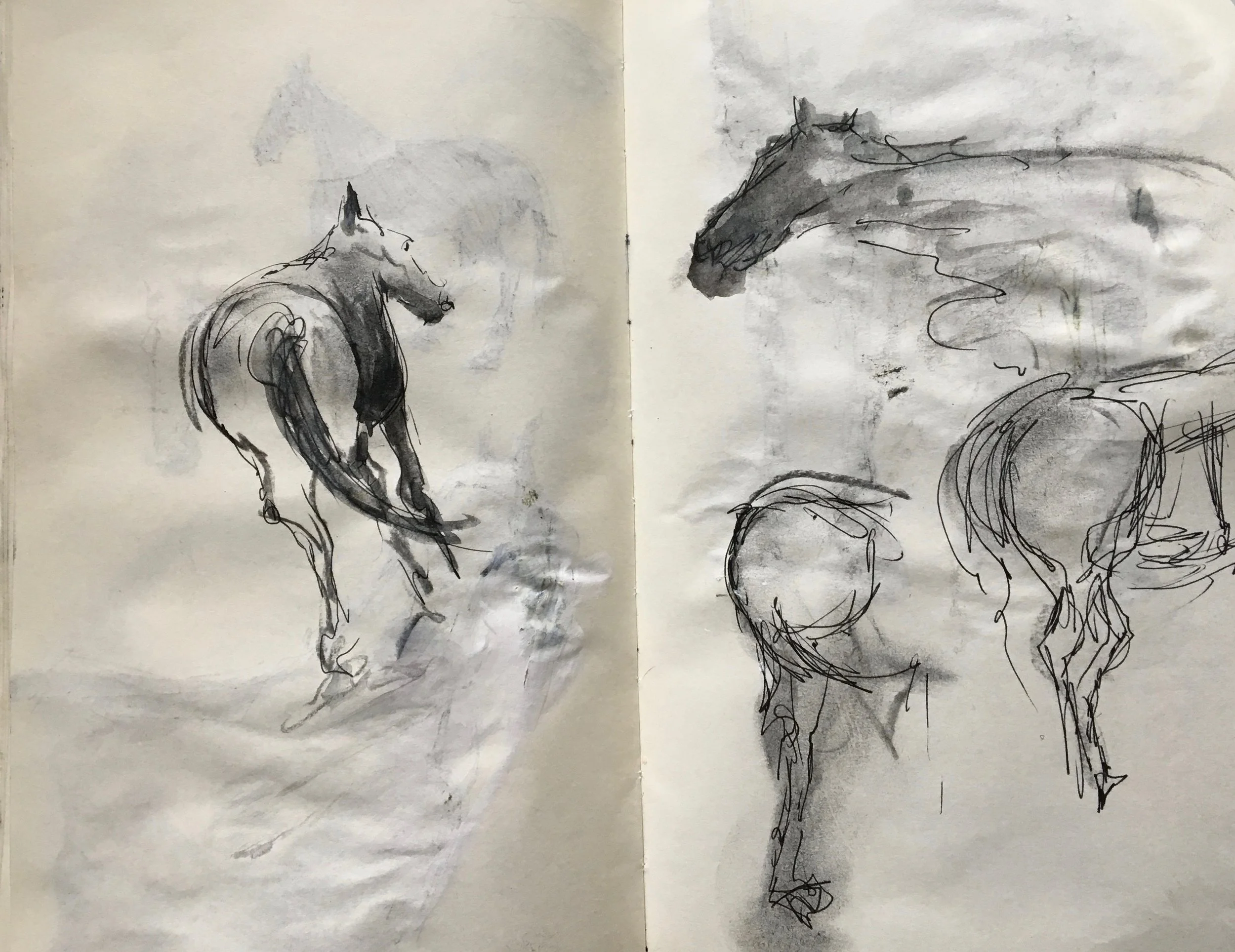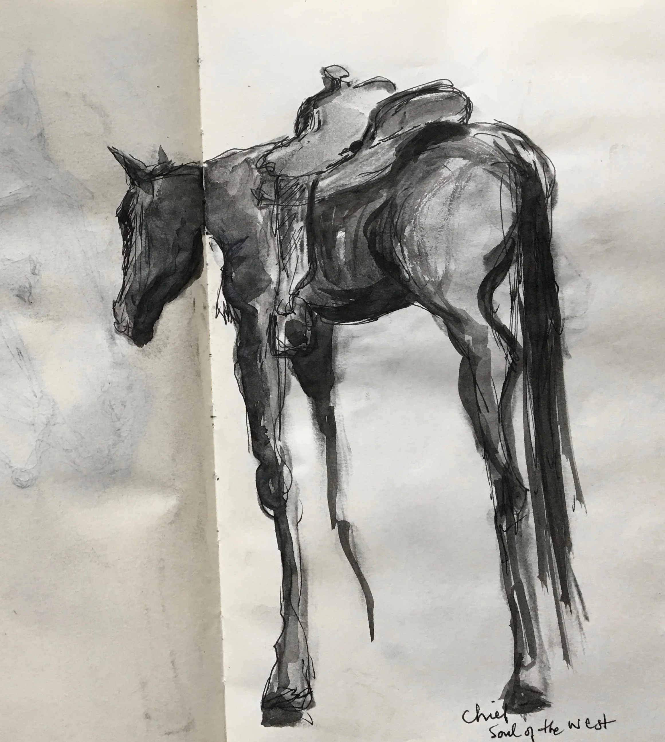 Amidst the busy hectic days we spent working the cows, herding the cattle, selecting cows, separating the calves, and learning the ins and outs of cowboy dressage, I was completely absorbed in the exercises. My mind focused on the cows, on my horse, on our work. On the last day I was pretty beat, and decided to take the afternoon easy. and reflect upon this happytime well spent….and be grateful to be an equestrian, an artist, a dreamer, and… a cowgirl taking a first step towards her new journey.